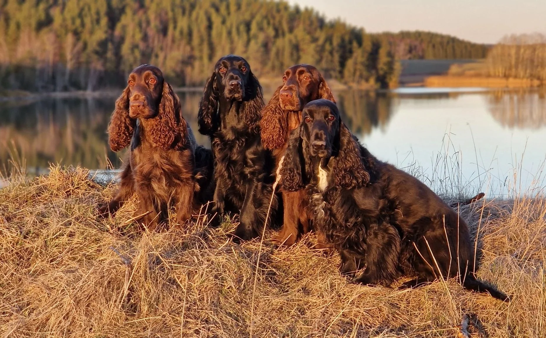 Field spanieln hör till de stötande och apporterande fågelhundarna precis som alla de andra spanielraserna.